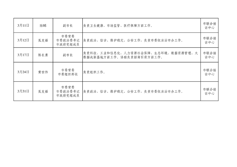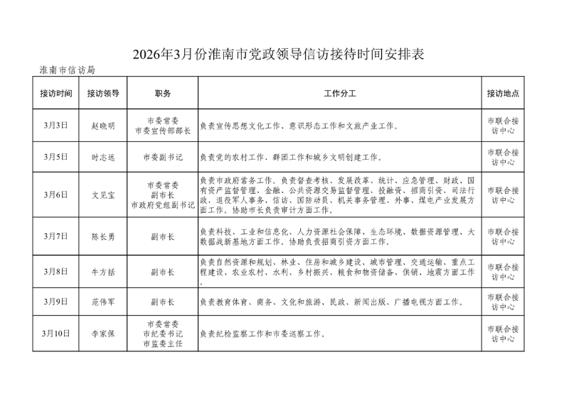 2026年3月份淮南市党政领导信访接待时间安排表