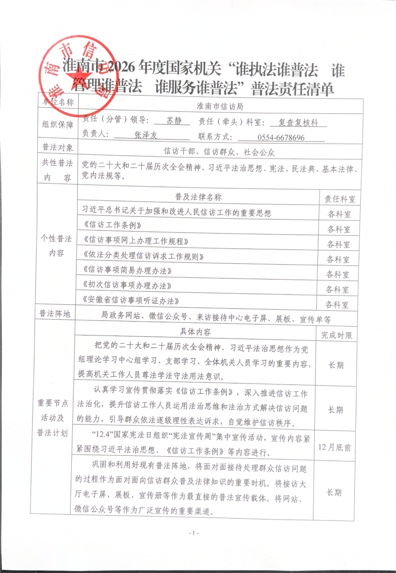 淮南市2026年度国家机关“谁执法谁普法 谁管理谁普法 谁服务谁普法”普法责任清单